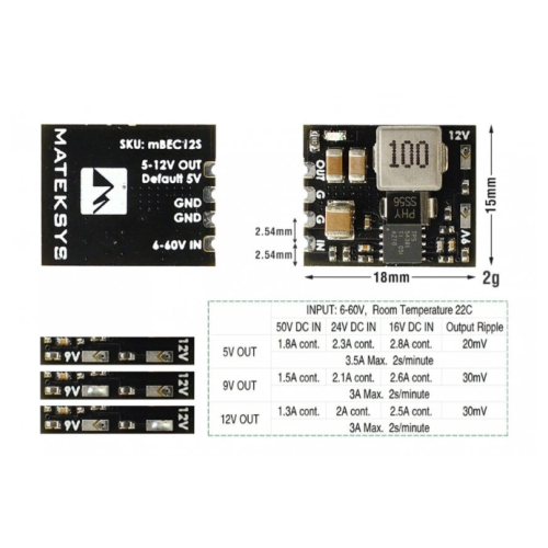 / Matek Systems – Micro BEC 5V/9V/12V-Adjustable Code: MTS-02-04-MBEC12S