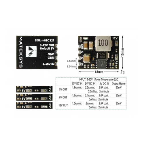 High Efficiency Synchronous Step-down regulator Wide 6V to 30V Operating Input Range Continuous load current: 1.5 Amps (Max.2.5A 5s/minute) VOut 5V or 9V Adj. Default is 5V. VOut Load Regulation: 2% Standby current: <5mA Maximum Duty Cycle: 95% OCP Protection and Hiccup Thermal Shutdown Output Short-circuit tolerant (5 seconds/minute) Pins distance: 2.54mm Size & Weight: 10x14x3mm, 1g Packaging: 3pcs/unit