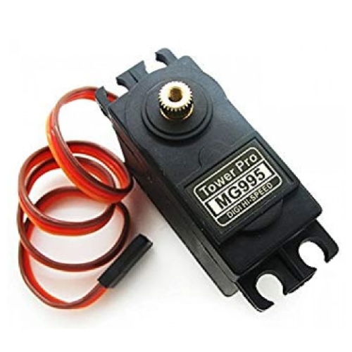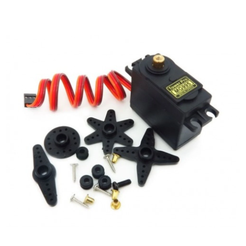 TowerPro MG995 is Metal Gear Servo Motor. You can use any servo code, hardware, or library to control these servos, so it’s great for beginners who want to make stuff move without building a motor controller with feedback & gearbox, especially since it will fit in small places. The MG995 Metal Gear Servo also comes with a selection of arms and hardware to get you set up nice and fast.